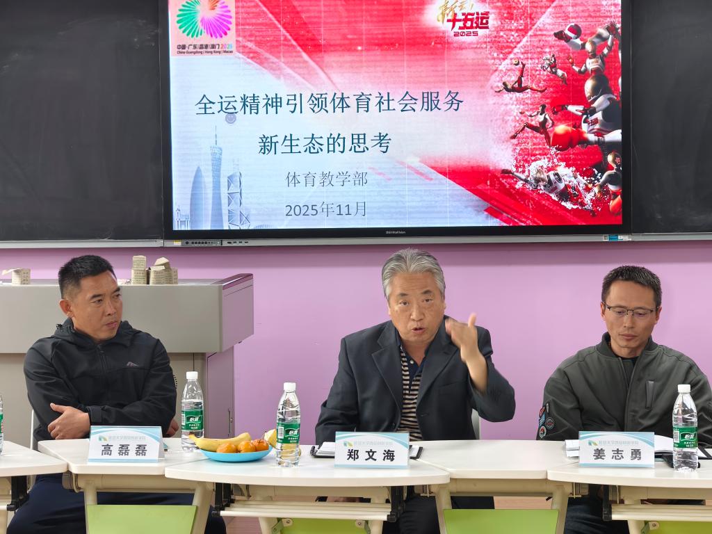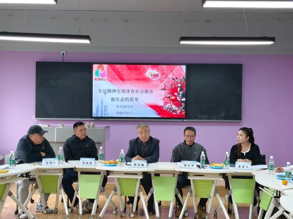 11月14日下午,体育教学部组织召开了主题为“全运精神引领体育社会服务新生态思考”科研沙龙。体育教学部全体教师参加沙龙研讨。本次活动由体育教学部贾琳主持。